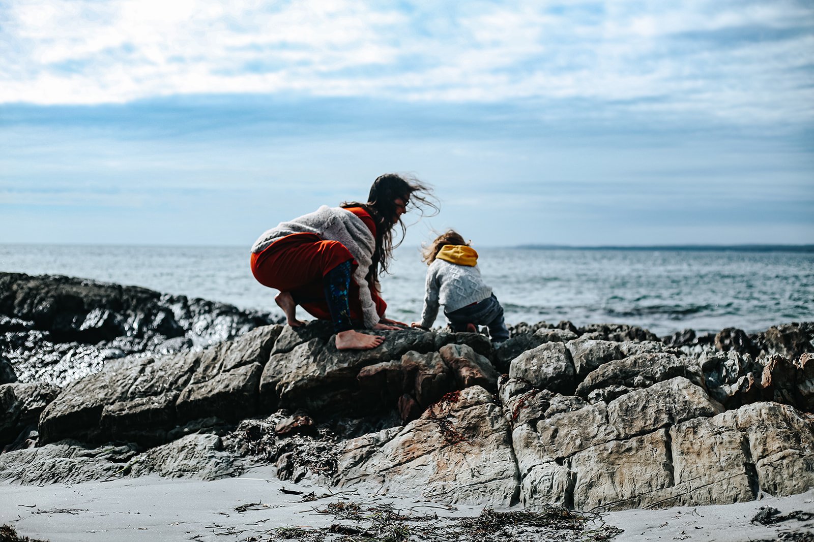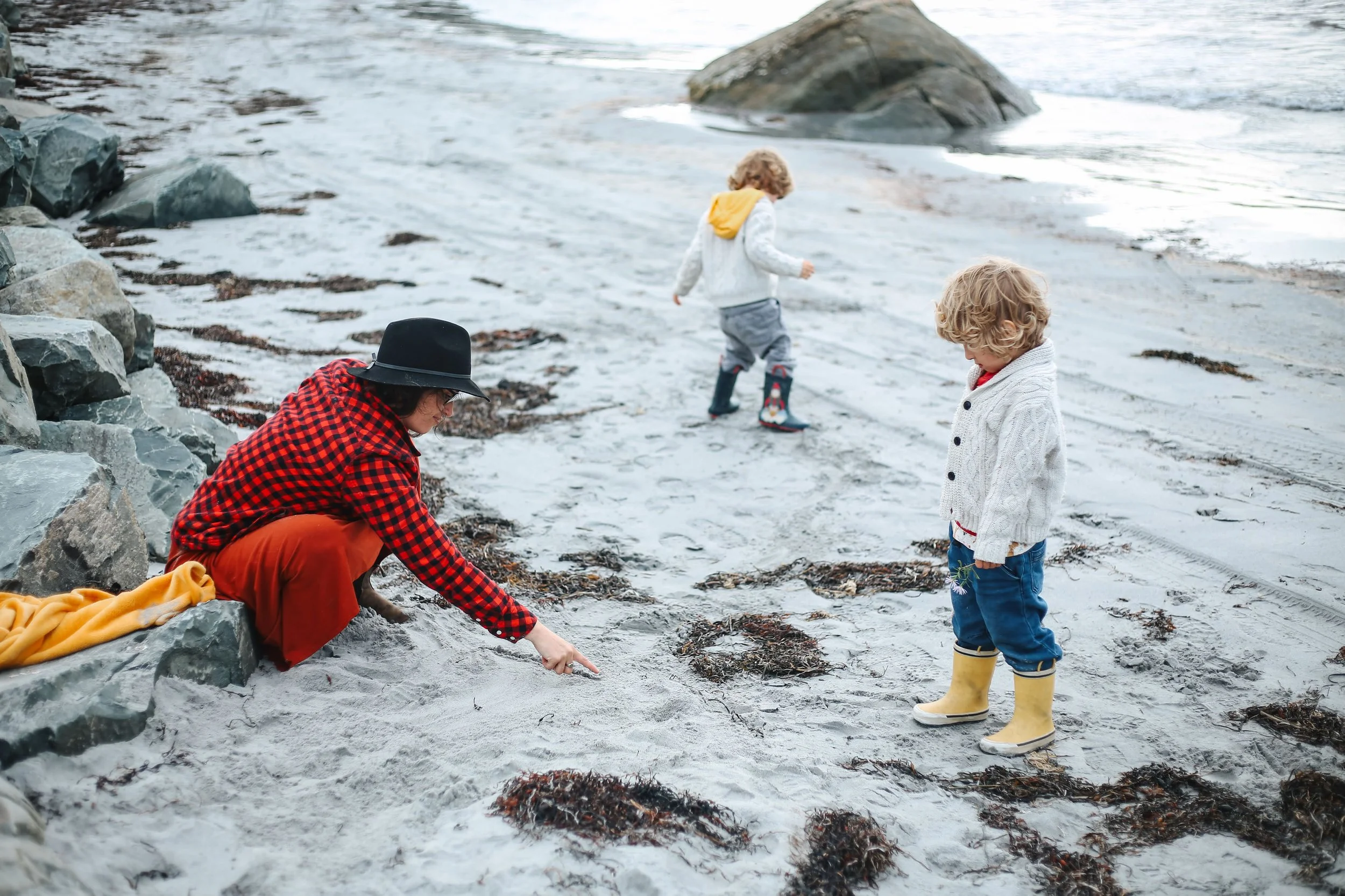 an active visual storytelling session with a young family on the beach
